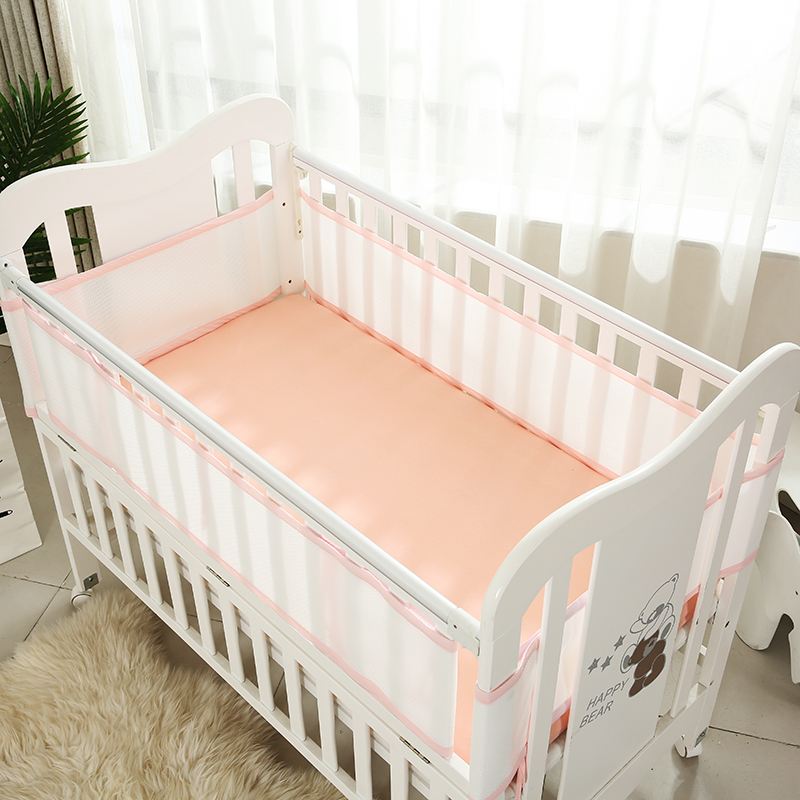 婴儿床四周大都是硬邦邦的木板或围栏,很多家长担心孩子头或手脚会被围栏卡住,或者担心孩子翻身碰伤头部,所以会在围栏上包一层软垫隔离保护一下,市面上也有这样的床围可以买。